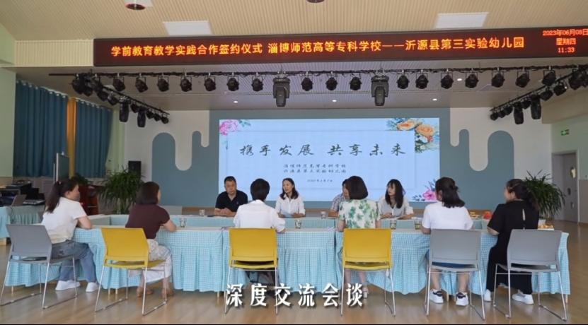 用人单位对我院教师的来访表示热烈欢迎,并全面地介绍了园所文化、发展情况、办园特色等,我院与沂源县教育和体育局党组成员、副局长秦昌英,县学前中心负责人刘乐兰和园长们通过座谈对校园合作思路给予了不同的建议,并进行实践基地授牌仪式。