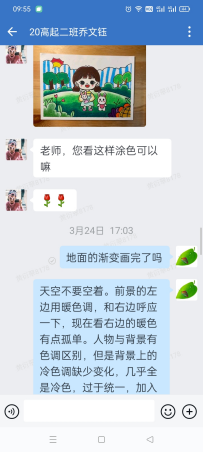 根据学生的学情特点,老师们进行了充分地备课,并通过企业微信上课直播、qq群互动等形式进行线上授课辅导。利用电脑、手机直播绘画指导的形式,让学生更直观地进行学习。为了弥补上课时间有限这一短板,老师们还录制了短视频推送给学生,以供学生利用课下时间进行观摩练习。