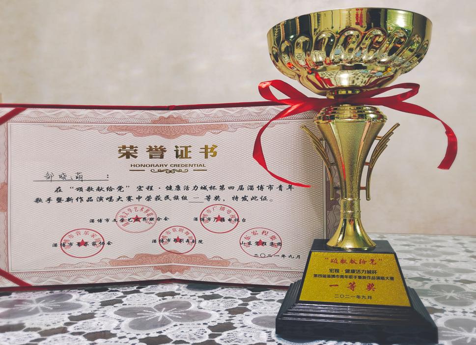 2021年9月25日—26日,第四届淄博市青年歌手暨新作品演唱大赛在淄博市广播电视台演播厅举办,最终美声、民族、通俗三种唱法分别产生一等奖2名。我院青年教师邹晓萌以扎实的演唱功底和极具感染力的舞台表现,得到专家评委的高度评价,从一百多位推荐选手中脱颖而出,荣获民族唱法一等奖第1名。