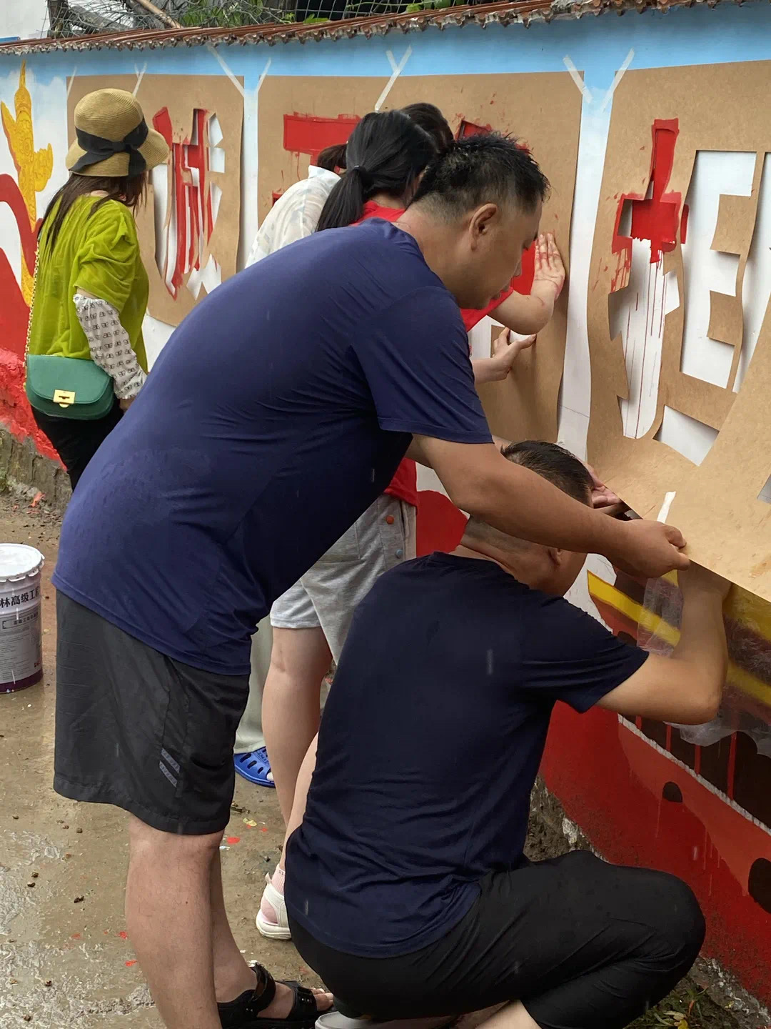 三下乡暑期志愿活动持续推进。天公不作美,同学和老师们冒雨,大家仍然充满热情地投入到作画当中,用手中的画笔为乡村绘制墙绘、增添色彩,美化乡村环境,让“美丽乡村”更美丽。在此次活动中,通过墙体绘画装点村容村貌,展示乡风文明,助力美丽乡村建设。
