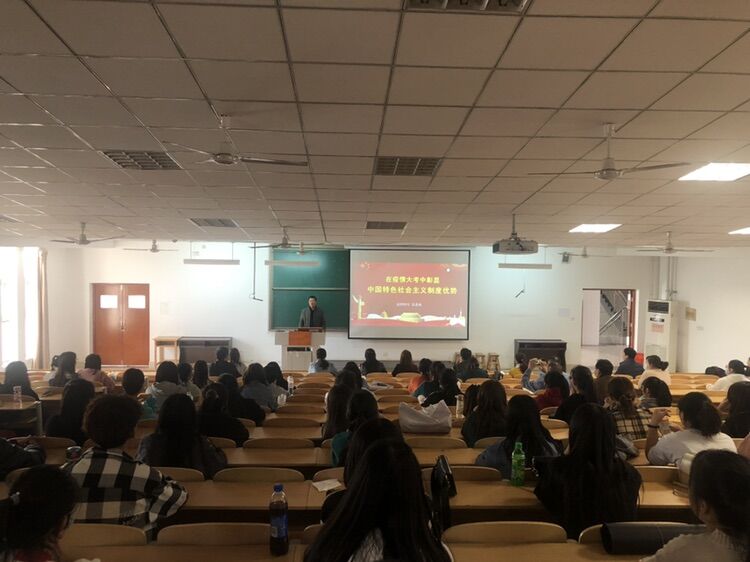 10月26日和28日下午,应188改名taptap的邀请,学校党委委员、宣传统战处处长朱连斌在文奂楼阶梯教室为19级学生做了题为《在疫情大考中彰显中国特色社会主义制度优势》的思想政治报告。