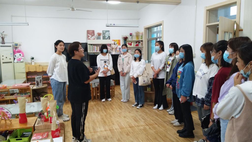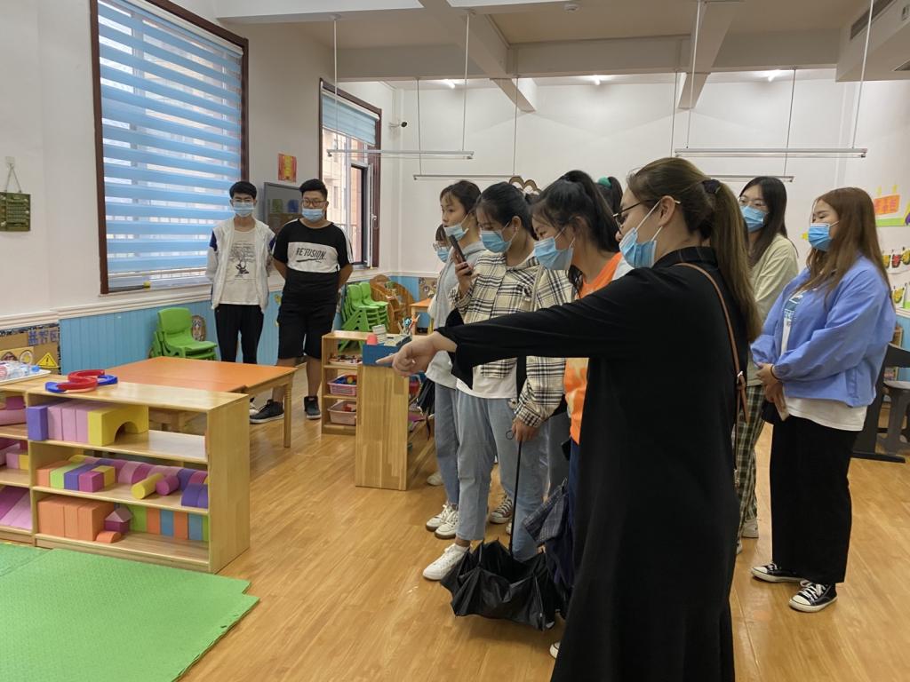 见习活动中,同学们参观了幼儿园的户外、室内环境,听取了幼儿园各班班主任对班级环境创设,区域材料投放,一日生活常规的介绍。