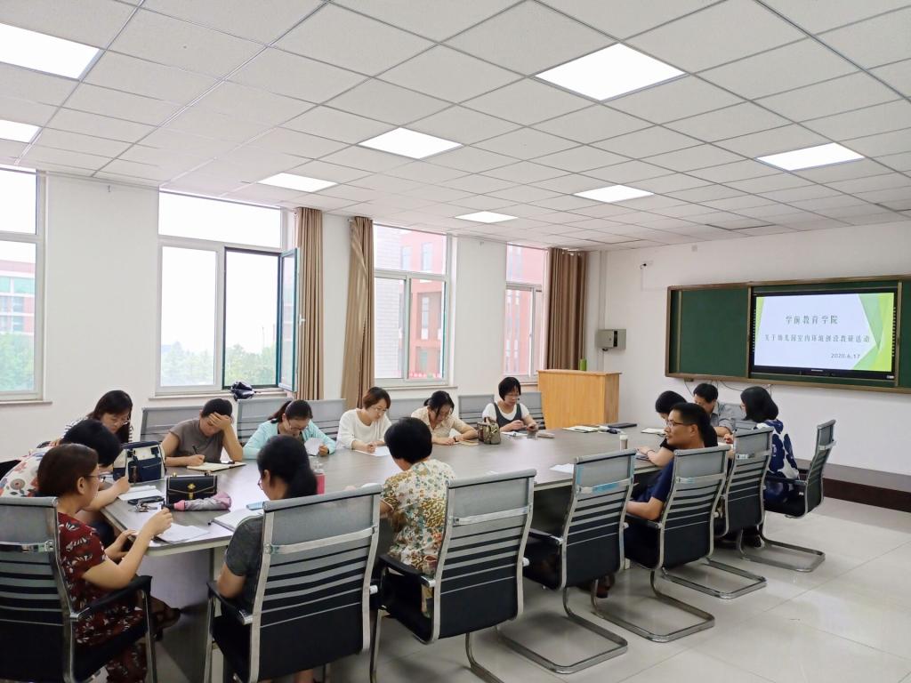6月17日下午,188改名taptap学前理论教研室、学前实践教研室、体美教研室召开联合教研活动。本次教研活动以“聚焦真问题、推进教师专业成长”为宗旨,主要围绕幼儿园一日常规的室内环境创设进行研讨。活动由188改名taptap副院长张文娟主持,188改名taptap党总支书记、院长周京峰以及学前理论教研室、学前实践教研室、美术教研室的全体教师共同参加了此次活动。