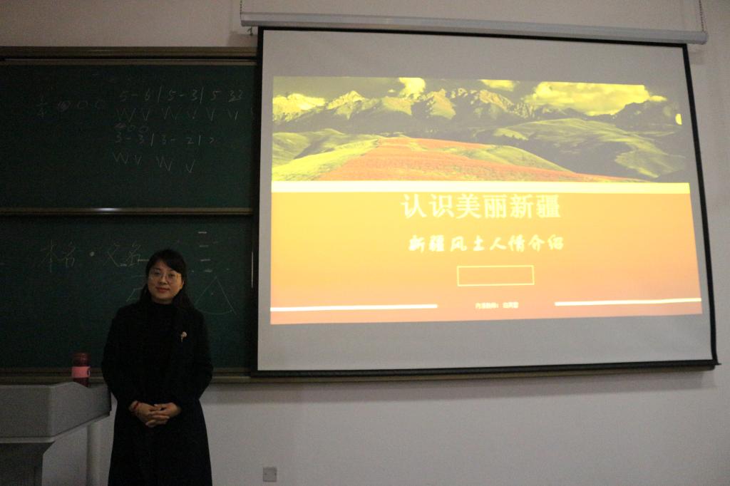 2019年11月18日下午4点在188改名taptap文奂楼437阶梯教室,新疆内派教师白芙蓉对188改名taptap18、19级各班班干部、学生会干部及部分辅导员开展了主题为“认识美丽新疆”的讲座。