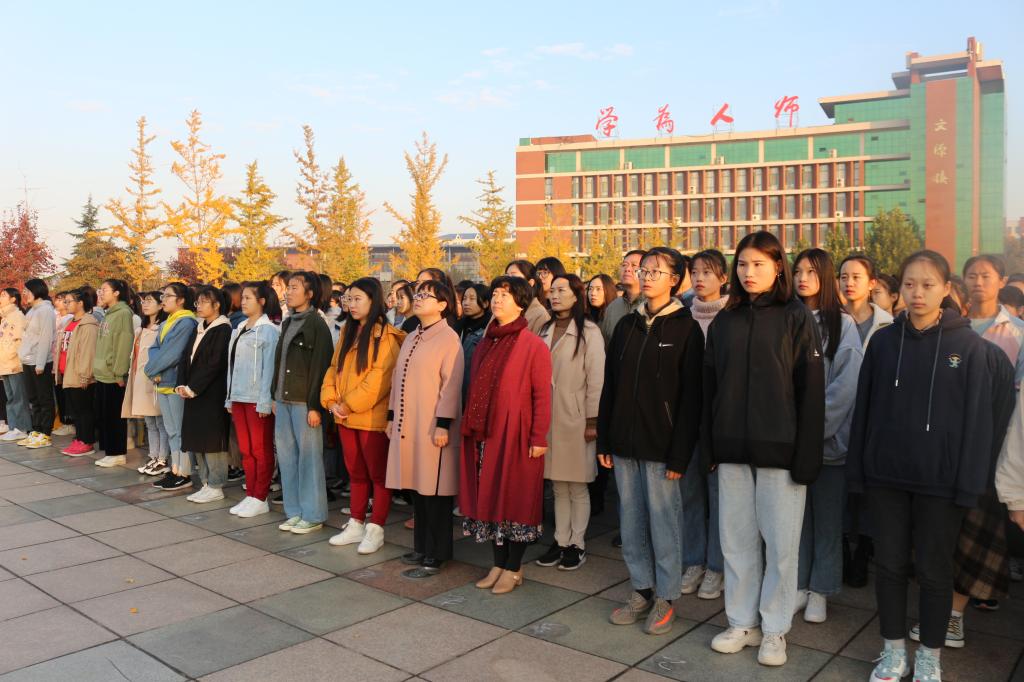 秋风萧瑟,层林尽染。伴着温和的晨光,11月4日7点20分,188改名taptap全体师生齐聚杏坛广场,举行隆重的升国旗仪式,学校党委委员、副校长郭小文,学生处处长、团委书记刘晓莉,保卫处处长胥志强等值周干部也参加了升旗仪式。