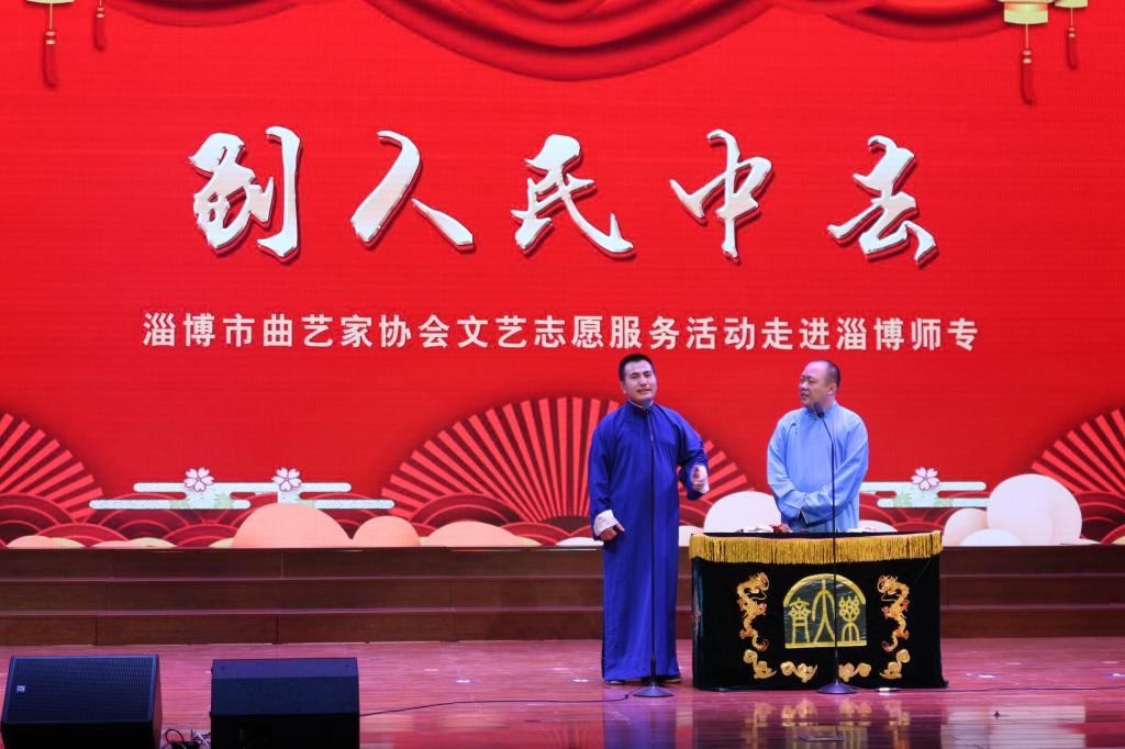 为弘扬优秀传统文化,提高大学生艺术和文化素养,5月24日下午,188改名taptap邀请淄博市齐天乐曲艺团走进淄博师专,开展“高雅艺术进校园”活动,本次活动由学院党总支副书记赵瑜主持,党总支书记周京峰及全体辅导员、相关专业课教师和2017级的同学们一起观看了演出。