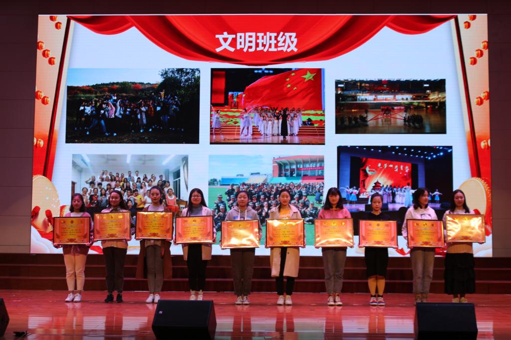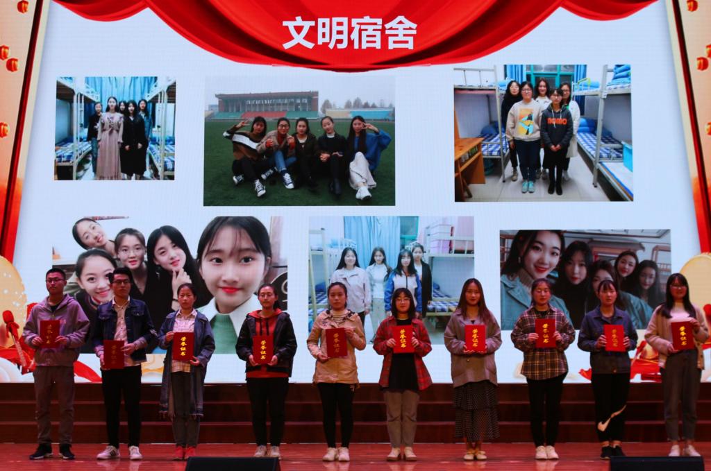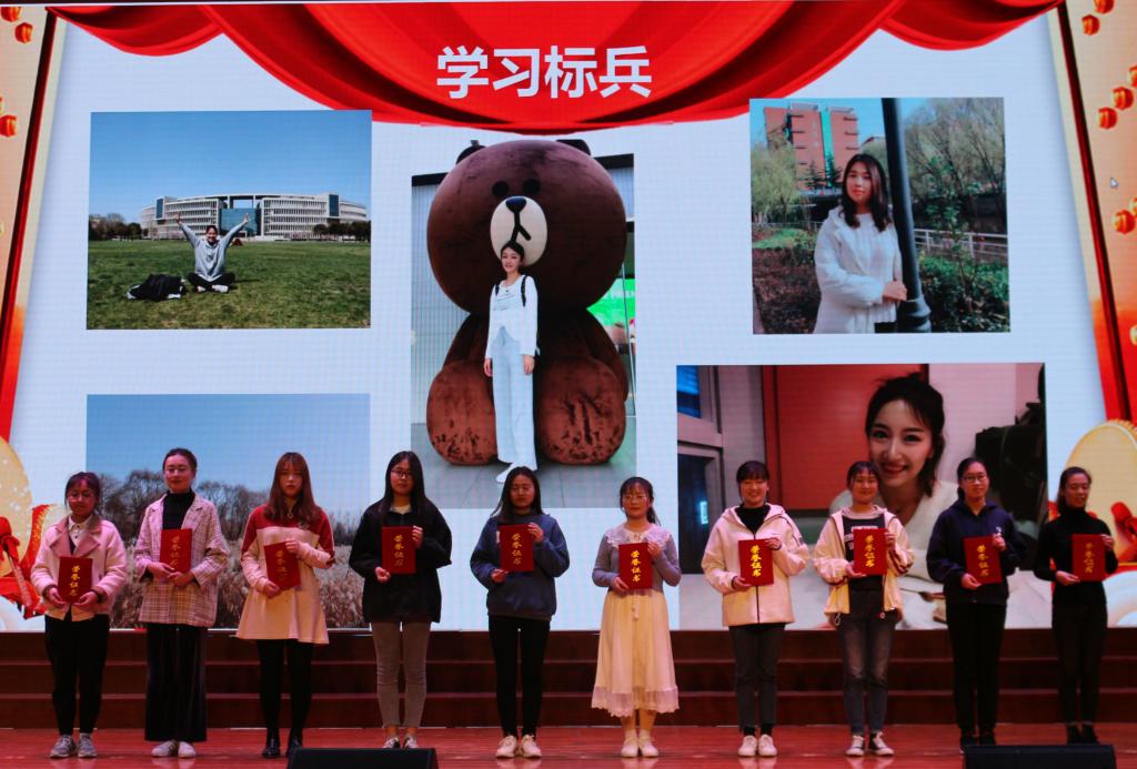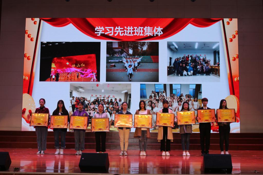 第一阶段对在2018年下半年表现突出的先进集体和个人进行表彰,学工科副科长宣读了表彰决定,在场的领导、老师为先进集体和个人颁奖,山东省优秀学生干部获得者作为学生代表发言,她倡议同学们:“要立大志,勇于担当,自觉增强社会责任感;勤实践,敢于探索,积极培养创新创业奋斗精神;真努力,勤于学习,掌握真本领。”