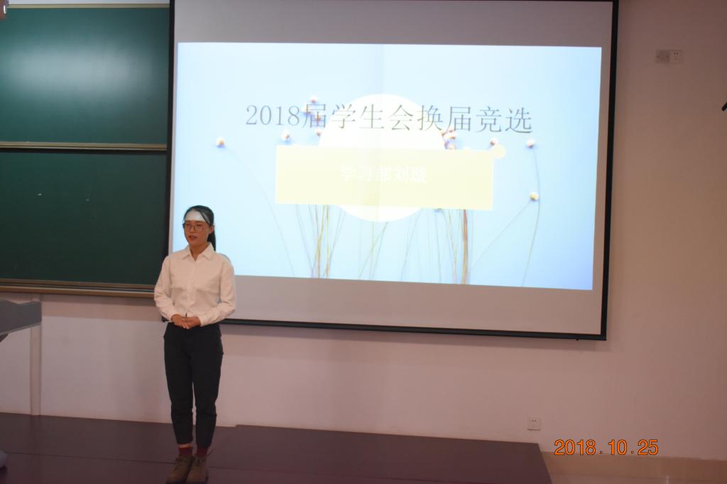 本次大会一共包括主题演讲与即兴答辩两个环节。各位候选人以高昂的声音、饱满的热情与认真的态度完成了竞职演讲,各竞选者结合PPT分别讲述了自我优势、对竞选岗位的认识以及工作设想;在即兴答辩环节,评委团根据竞选岗位要求对竞选者进行提问,引导他们思考,竞选者们回答要点分明,见解独到,较好的完成了答辩题目。大会现场气氛热烈,掌声不断。