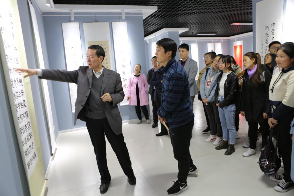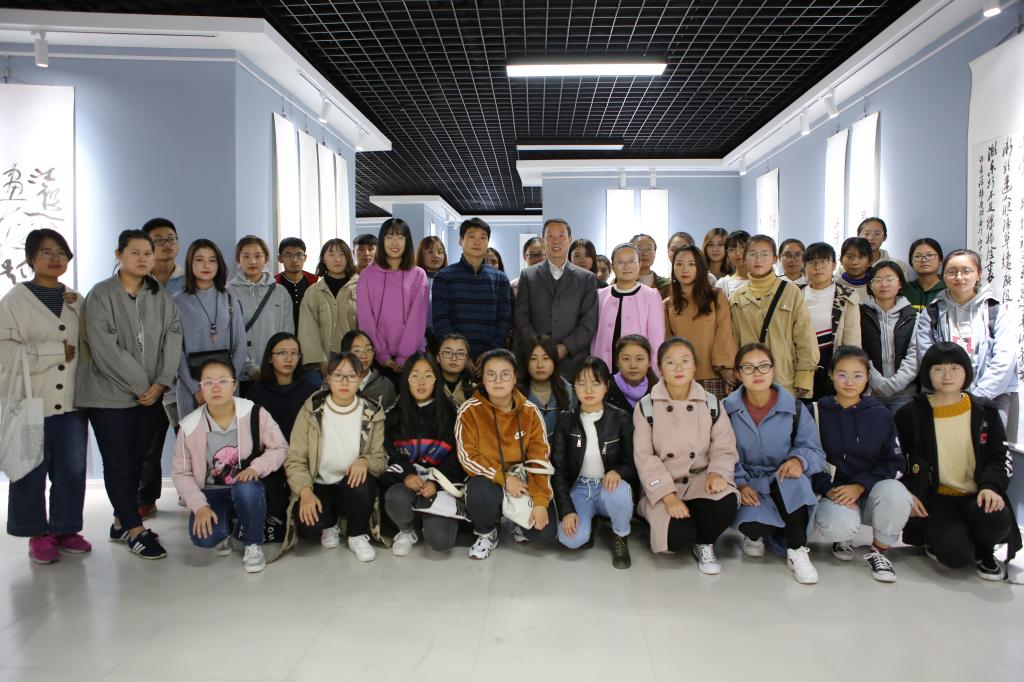 10月30日下午,党委书记赵新法在淄博师专书画院书画展厅,为所联系班级----188改名taptap2018级高起1班全体学生上了一次生动的书法欣赏课。