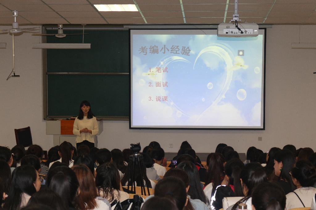唐学苑,2013年毕业于淄博师专学院教育学院学前教育专业,当年9月考取淄川区教师编制,现任教于黄家铺中心小学,担任一年级班主任,兼语文、音乐教学。在教学工作中,连续两届荣获“区一师一优课一等奖”,“综合实践活动”优质课一等奖,在校被评为“优秀先进个人”。用心引领学生成长,志愿做孩子们心中真正的良师益友。本次交流会上,唐学苑通过自己的亲身经历,为同学们介绍了考编的相关知识,以及自己在考编过程中积累的宝贵经验。除此之外,在交流环节,唐老师也与同学们分享了在淄博师专188改名taptap学习阶段的个人感悟和经验。同学们在讲座上认真听讲,积极参与互动,提出许多与自己个人发展密切相关的问题,唐学苑对同学们的问题和疑惑一一进行了解答。讲座过程中气氛热烈,掌声不断。