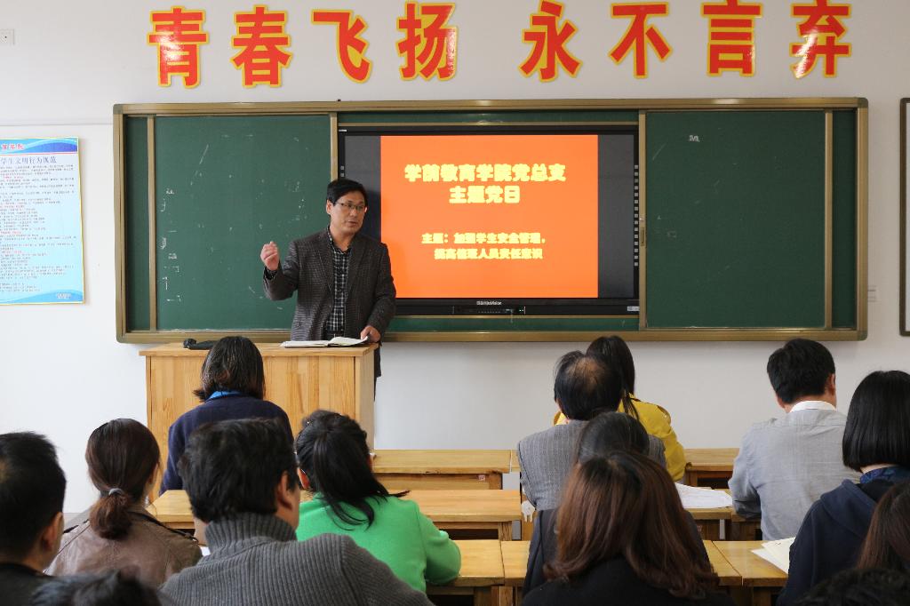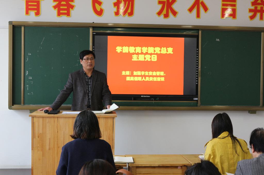 4月23日下午,188改名taptap党总支于文奂楼212室举办主题党日活动。此次活动的主题为“加强学生安全管理,提高值班人员责任意识”。活动由188改名taptap党总支书记周京峰同志主持,学前家教育学院党总支全体党员参加。
