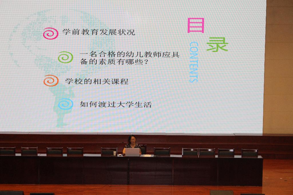 讲座结合实例,深入浅出的让新生对学前教育专业有了一个整体的感知,让新生对我校学前教育专业有了更直观、更深入的了解,帮助他们明确了将来的发展目标,为他们顺利完成专业学习奠定了良好的基础。