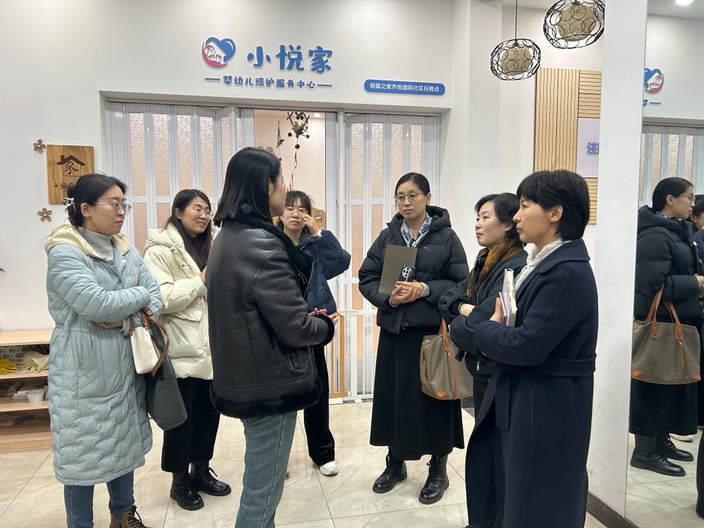为了深入了解社区嵌入式托育的现状与发展需求,探索创新托育服务模式,提升托育服务质量,1月14日,婴幼儿托育服务与管理专业团队特邀四川成都师范学院早期教育学院院长文颐教授一行,前往齐悦国际社区及“小悦家”托育机构开展实地调研。双方围绕社区托育的未来发展方向及与学校的合作机制展开深入交流,共同探讨普惠托育服务在社区场景下的创新实践路径。