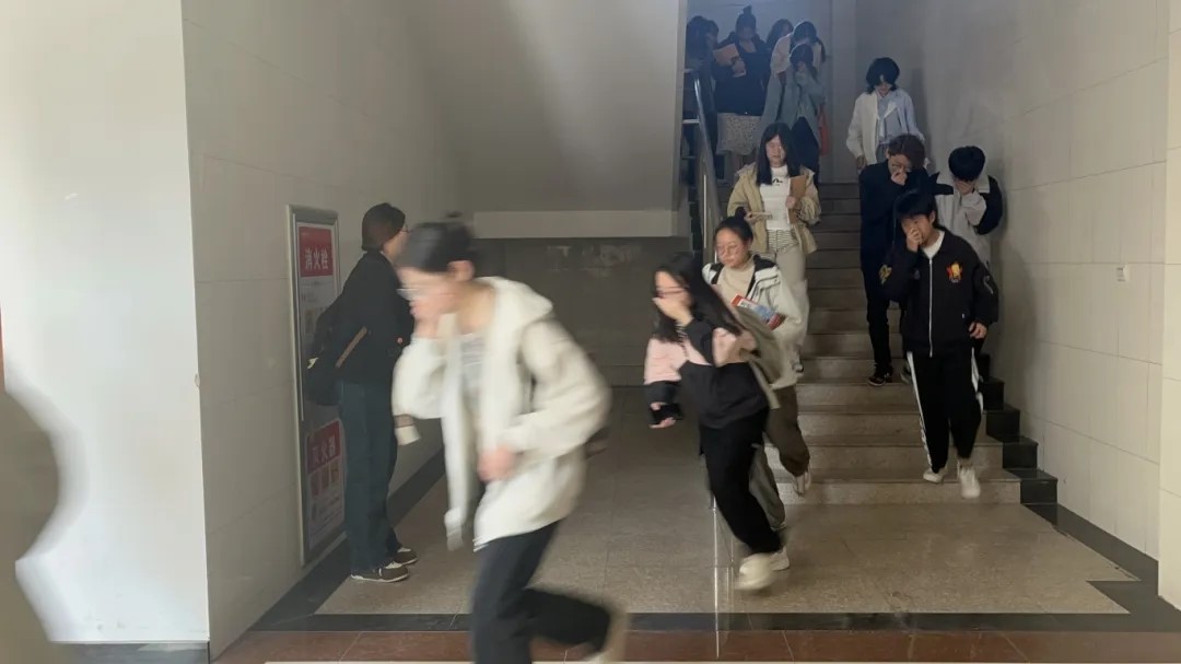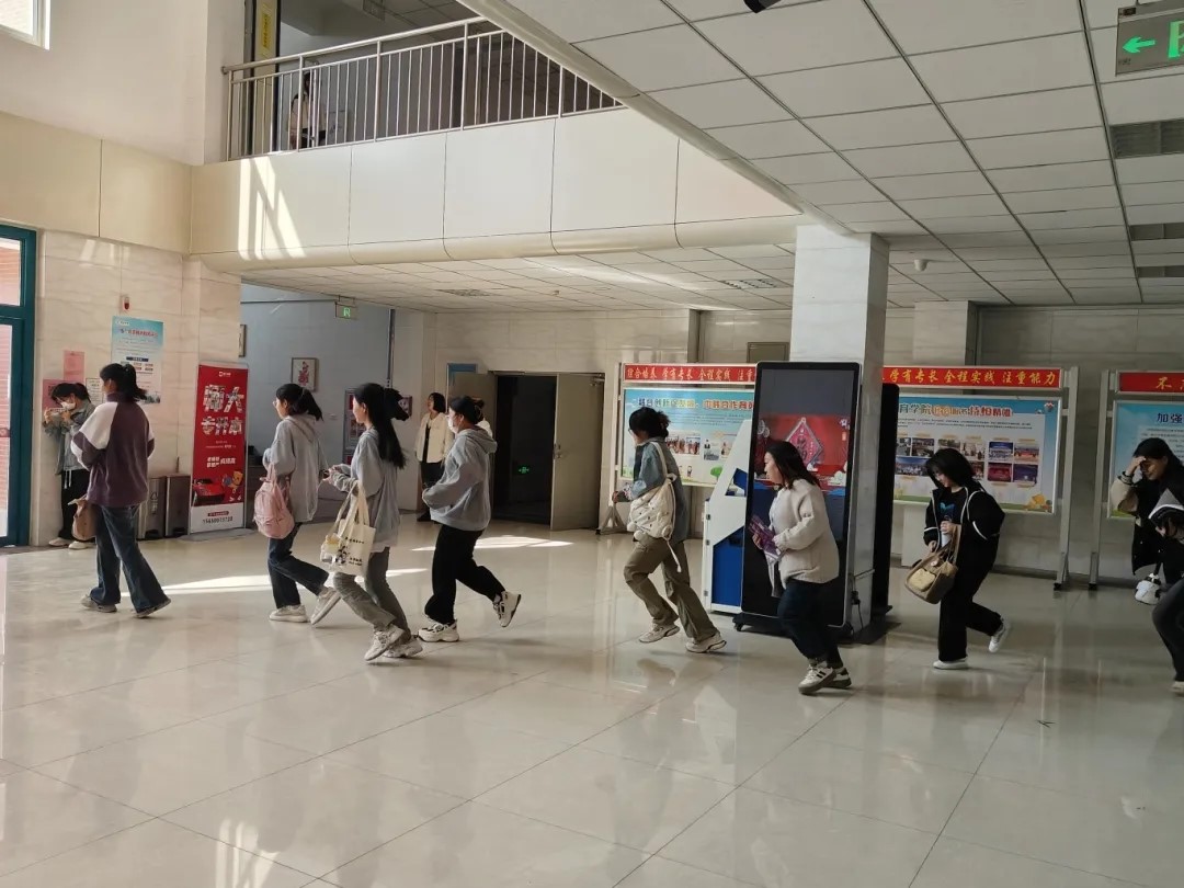 随着警报声,学生们反应迅速, 弯腰低身,双手捂住口鼻,沿预定安全路线快速、有序地疏散到室外安全空旷场地。 在成功撤离到安全地点后,负责人清点并上报学生人数。整个演练活动都是按预案进行,既紧张又有条不紊,始终密切关注学生安全,没有疏漏一名学生,全部安全撤离。