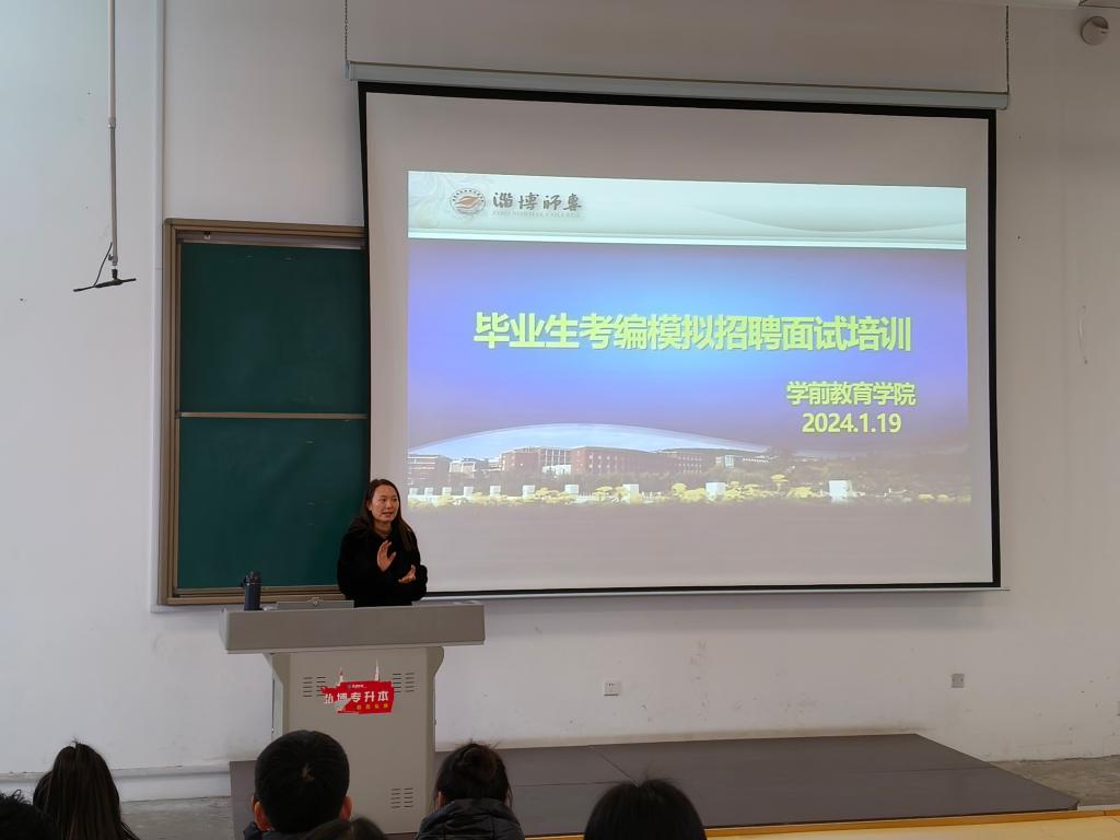 首先,赵瑜院长为同学们分析了学前教育专业的就业和考编形势,动员大家提早规划,积极就业,祝愿同学们能够顺利考编上岸。随后,淄博师专附属幼儿园园长助理王云霞,向同学们介绍了事业编报考流程、幼儿园人才素质需求和面试程序,帮助同学们了解了事业编考试的详细流程和需要注意的细节。最后,学院邀请了考编成功的往届优秀毕业生朱琳和王舒涵,她们结合自身考编实战经历,和同学们分享了备考及笔试和面试的宝贵经验,鼓励同学们积极参加毕业顶岗实习,在幼儿园实习过程中备考事半功倍。此外,她们还推荐了优质网络资源帮助同学们巩固理论知识。