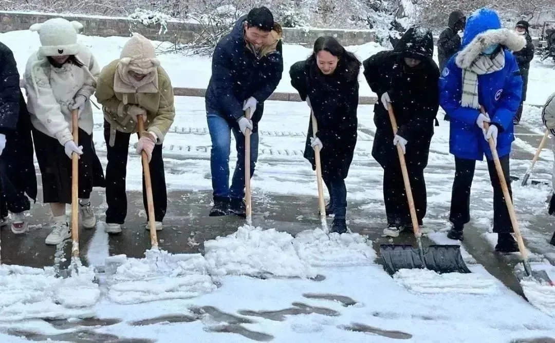 活动中,我院老师带领学生干部齐心协力,采用推、铲、扬、堆等多种方法,不仅快速清扫了路面积雪,更是让原本枯燥无味的清雪工作变得趣味十足,给寒冷的冬日增添了活力和激情。在大家的共同努力下,为师生们开辟出一条条洋溢着温暖的方便之路。在寒冷的环境中,我院师生不畏严寒,充分发挥了团队协作精神,打出了一场漂亮的除雪仗。