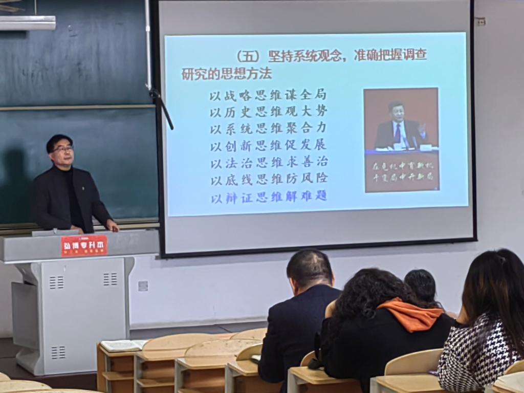 聆听了本次党课,同志们更加深刻地认识到,要用好调查研究这一传家宝,纷纷表示要更加深入到广大学生中去,深入到广阔的教育教学实践中去,讲实话、办实事、求实效,为同学们排忧解难,努力提升教学科研水平,发挥好先锋模范作用,助推学校高质量发展。