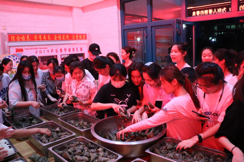 经过一天的忙碌,近2000个粽子新鲜出锅,师生们把亲自动手制作的粽子带到文奂楼大厅,分发给各班同学们,整个文奂楼洋溢着节日的气氛和欢快的笑声!