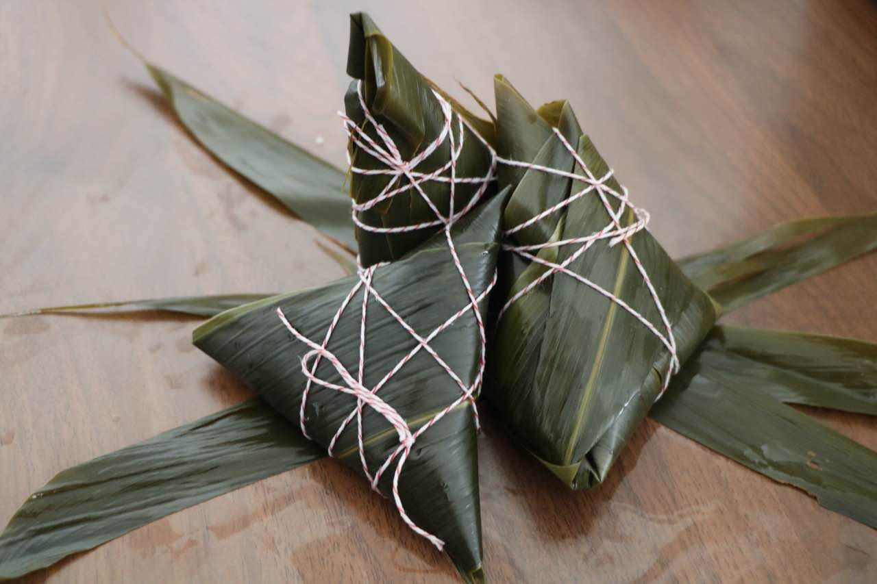 同学们在餐厅面点师和社团老师们的细心指导下学会了手法和技巧,红枣糯米裹上粽叶,搭配起来香气四溢,正所谓色香味俱全。