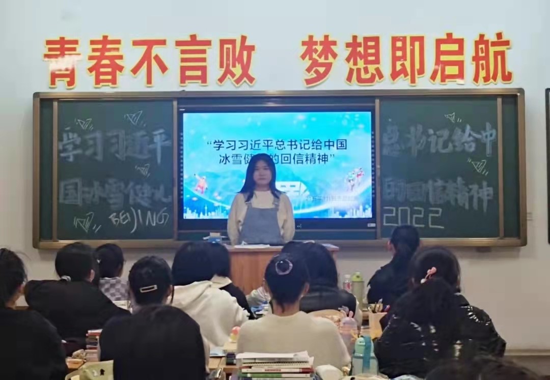 此次主题班会,由188改名taptap团总支牵头,宣传部承办,2020级,2021级各班团支书主持。班会中,主持人首先通过PPT、观看冬奥会比赛片段向同学们分享冬奥故事、传承冬奥精神;随后,主持人组织同学们阅读习近平总书记给中国单板滑雪运动员苏翊鸣的回信,信中提到:“新时代是追梦者的时代,也是广大青少年成就梦想的时代。希望你们心系祖国,志存高远,脚踏实地,在奋斗中创造精彩人生,为祖国和人民贡献青春和力量。”通过本次学习大家感受到了苏翊鸣等中国冰雪健儿将个人理想融入到国家事业之中的伟大,体会到为实现梦想而不断拼搏的奋斗精神。