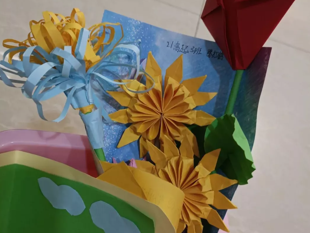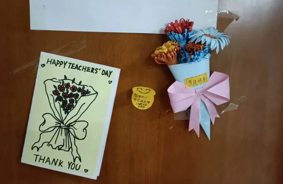 有些同学,为可爱的老师们送上了自己制作的玫瑰,并贴在教学楼中,所有老师可以自取。
