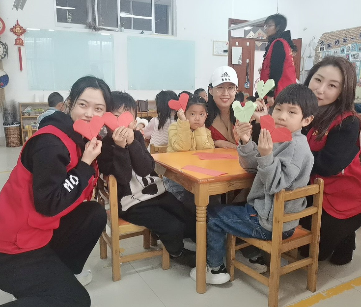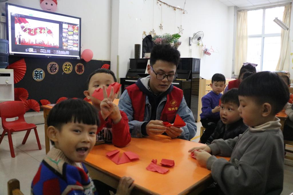我们根据幼儿的年龄特点,开展不同形式的主题活动。在小班,同学们以动漫绘本的形式给孩子们讲雷锋的故事,让孩子们认识雷锋,知道雷锋是一位乐于助人的解放军叔叔;在中班,党员老师们和同学们一起耐心指导孩子们做手工——“折纸爱心”,这既能锻炼幼儿的动手能力,又能引导孩子们做一个有爱心的人,鼓励孩子们用行动表达对周围人的“爱心”!在大班,同学们教唱幼儿歌曲《学习雷锋好榜样》,孩子们洪亮的歌声响彻教室,雷锋精神随着歌声走入了孩子们的心田。