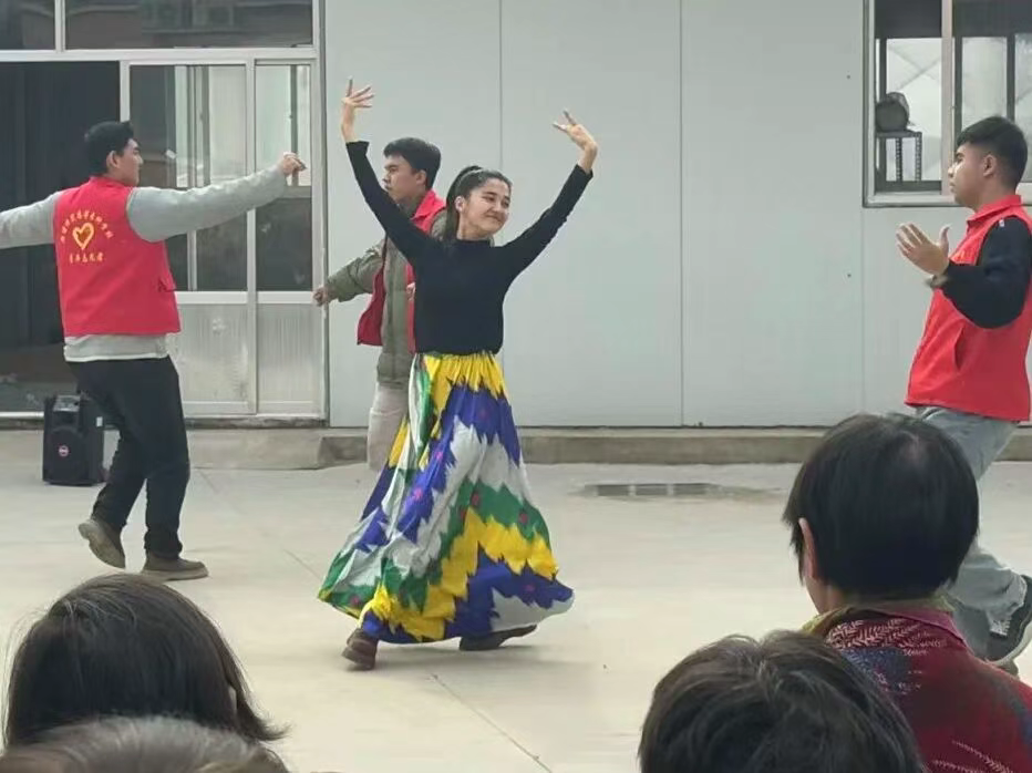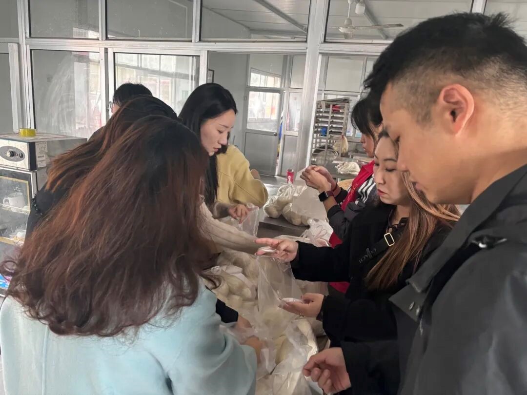 随后,师生们分工明确、干劲十足,将暖心服务落到实处。老师带头行动,与学生志愿者们一同为社区老人们有序分发提前精心准备的馒头,每一份热气腾腾的食物都承载着对长辈的敬重与关怀,老人们接过馒头时的笑容格外温暖。
