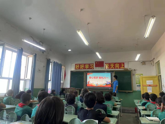进行民族团结理论政策宣讲,铸牢中华民族共同体意识。志愿者们将民族团结教育融入课堂,开展山东文化理论宣传和山东的政策宣讲、“两弹一星”精神宣讲、八一建军节系列主题课程——学党史、唱军歌、普及国防教育知识,进一步培养学生们爱党爱国情操,积极引导他们牢固树立心向党、齐爱国的价值取向,为学生们埋下国之大者的种子,增强民族自豪感与自信心。开设国旗文化课程,传承红色基因,志愿者带领学生们认识了解国旗、党旗、军旗、团旗、队旗的起源和发展,认识国徽、党徽、军徽、团徽、队徽的形状和使用场合。同时带领了解中国精神,具体学习伟大的建党精神、大别山精神、长征精神、井冈山精神,学习中国社会主义核心价值观,希望学生们养成不怕苦不怕累,敢于奋斗,坚守信念、爱党爱国、诚实守信的美好品质。深化当地学生对于“铸牢中华民族共同体意识”的认同,促进各民族间的交流交往交融。