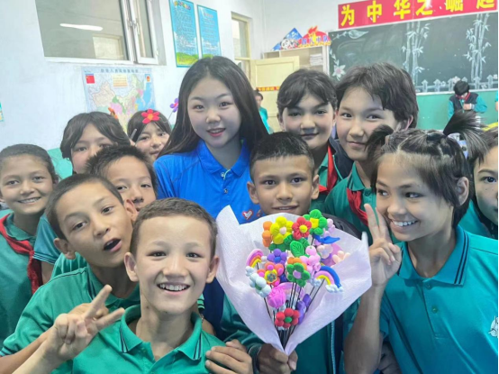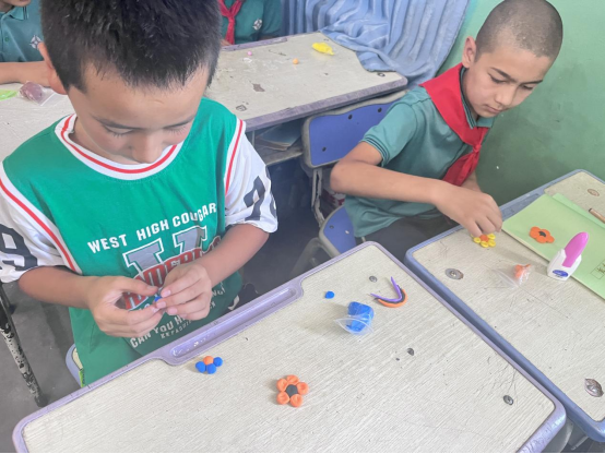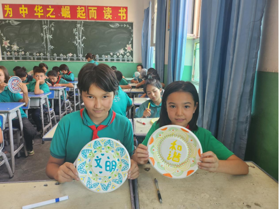 体验传统文化活动,立德树人美育启智。志愿者们依托学前教育专业优势,针对当地学生的实际情况,开设美育系列课程,鼓励学生们以小组为单位进行手工创作,发挥个人想象力和创造力,以美育来启迪学生们的智慧。志愿者引导学生们制作粘土花束、手工剪纸、社会主义核心价值观盘子画、学习古典舞等来锻炼学生们动手能力和团结协作能力,在进行手工操作和舞蹈学习的同时,对中华传统文化有更进一步的了解,进而促进当地学生在德智体美劳等方面实现全面发展。