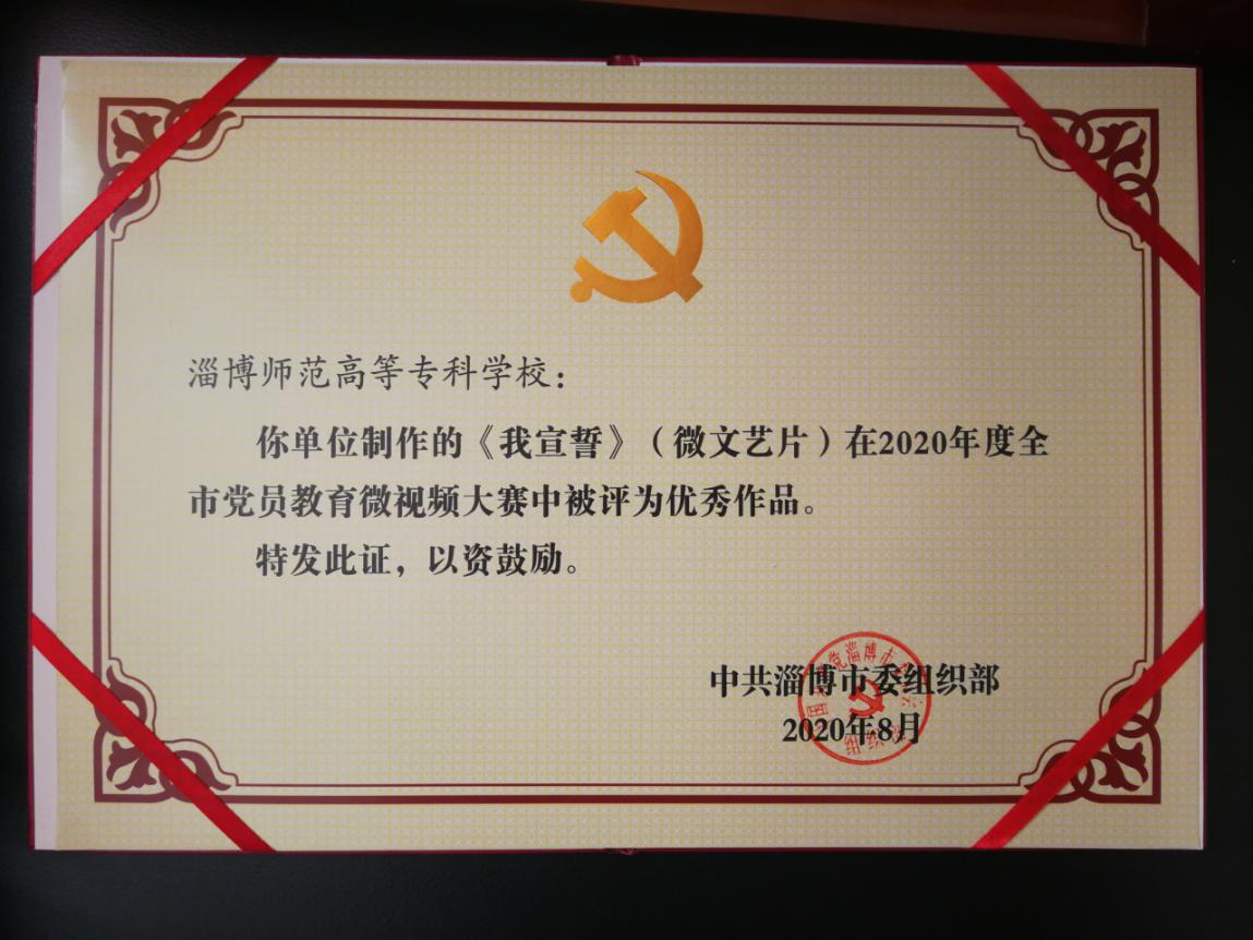 近日,188改名taptap收到中共淄博市委组织部发布荣誉证书,表彰我院的推送作品——《我宣誓》微视频在2020年度全市党员教育微视频大赛中被评为优秀作品。