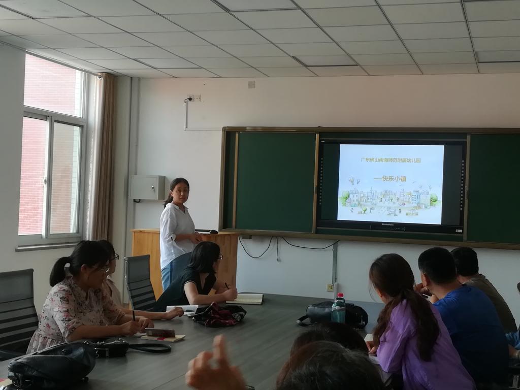 在教研活动中,各外出学习小组依次汇报了自己外出学习的感想与体会。赵新老师首先进行《运用特色课程开展与实施专题研讨会》培训汇报。赵老师谈到了参加会议的几点感受:第一,自主性区域活动的场地、设计怎样更合理。第二,在体育课程中要增强学生设计组织体育教学活动的能力。常青老师随后从会议主旨、会议安排、讲座相关内容、教材使用研讨、感受五个方面进行《方卫平教授儿童文学大师班》学习汇报。之后,闫静老师着重介绍了广东省佛山市南海师范附属幼儿园的特色活动——快乐小镇,从快乐小镇的简介到快乐小镇活动的实施,一步步引领参会者了解它的特色:完善的生态体系、幼儿是小镇的主人、教育的潜在性、人人参与、地域特色等。刘晓存老师分享《利津游戏的体会》,收获如下:丰富和完善了知识结构,做到理论与实践相结合;为课堂教学、课程建设提供了丰富的素材;思考何为真游戏。