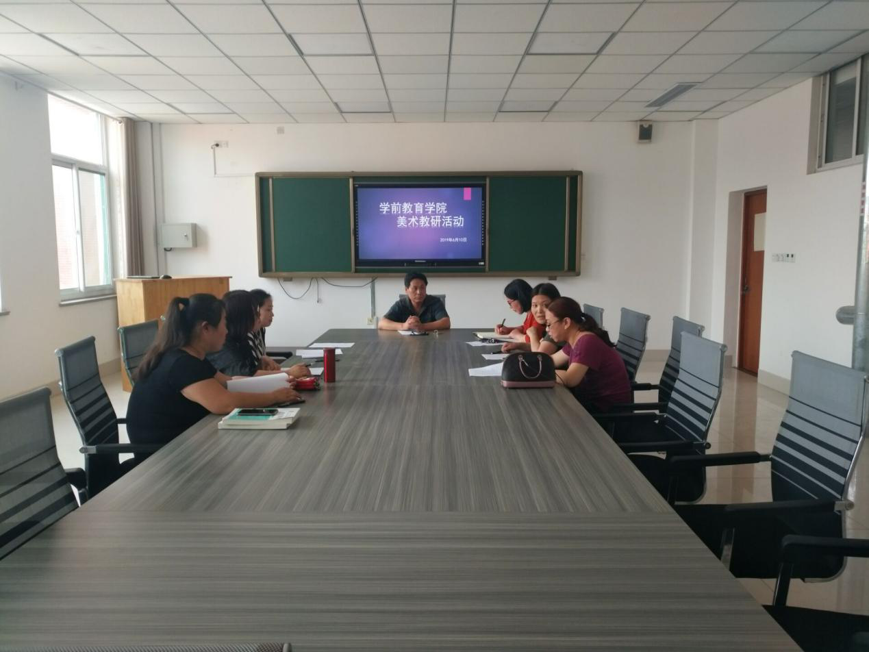 教研活动开始,王娇斌老师就《山东省幼儿园课程指导教师用书》中小班、中班、大班的美术教学内容进行了梳理,结合案例介绍了幼儿园中涉及到的美术活动类型。接下来,教研室的老师围绕着培养合格的幼儿教师需具备的美术素养,就美术教学中内容的改进、大纲的修订、思政的渗透等方面发表了自己的见解。张文娟副院长肯定了长期以来我们美术教学取得的成绩,同时分析了我们开展美术课程的价值、幼儿园的用人需求、当前幼儿园美术教学的特点、我们怎样改进美术教学等问题。最后周京峰院长指出:开展美术教学要与幼儿园实际运用相结合、与幼儿园教师资格证考试相结合、与省编活动教材相结合,与培养目标不偏离,注重在美术教学中进行思政渗透,提高美术教学的质量。