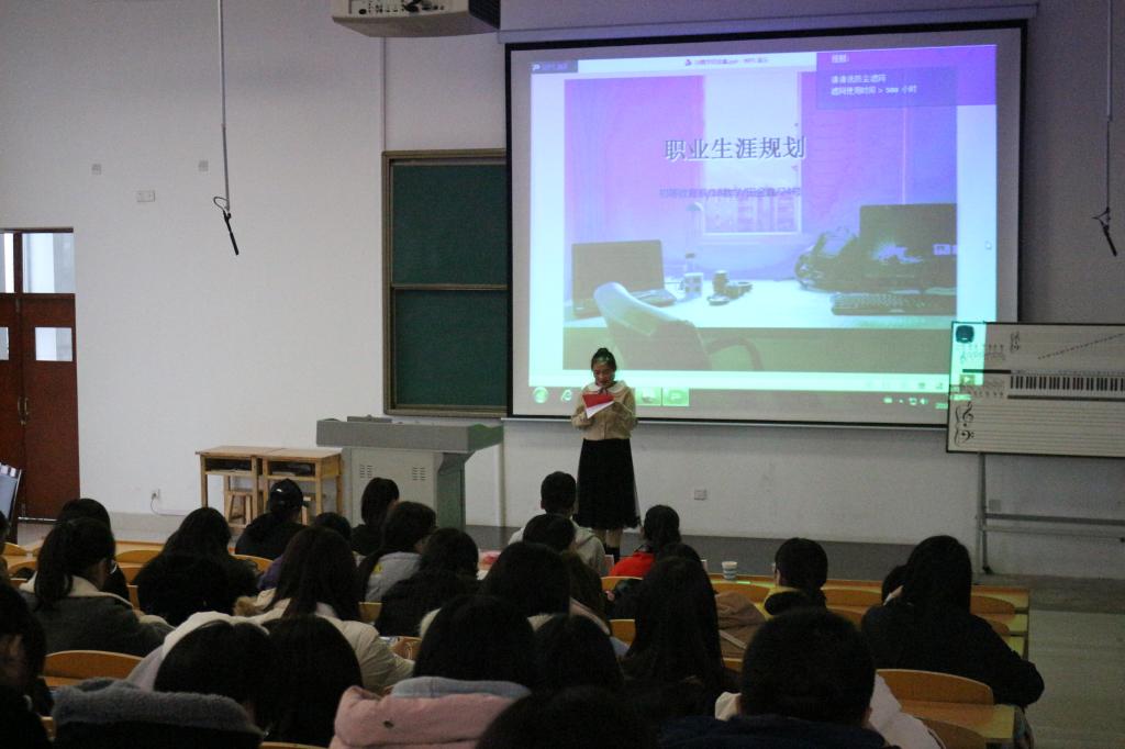 淄博师专职业生涯规划大赛分为初赛和决赛两个阶段。各院系通过初赛,推选出自己的优秀选手参加了本次决赛。决赛分为书面作品评比、现场PPT作品展示、职业角色模拟扮演三个环节。我院在赛程安排和评委选择上力求最大程度保证比赛的公平性与严谨性,让选手充分表现自己的个人能力和专业特色。PPT陈述环节,选手结合PPT演示文稿,对自我认知、职业认知、目标确立、计划实施与反馈修正五个方面的内容进行了全面的分析和细致的阐述,结合声情并茂的职场情景模拟,充分展示了参赛选手良好的专业技能和素养。其中,我院推荐的选手宗国瑶、陈洁,表现突出,获得了评委和观众的肯定。