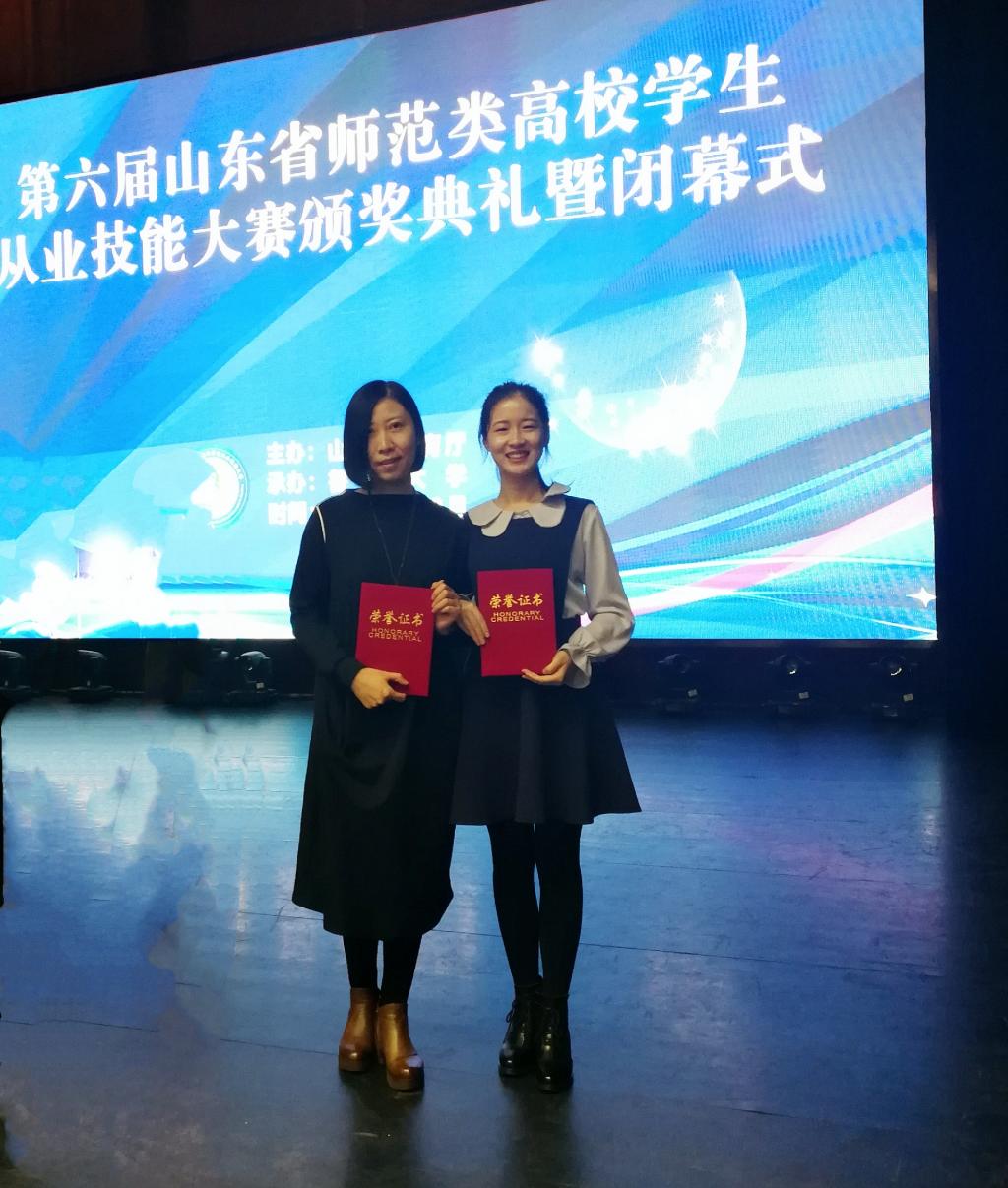 10月18至21日,第六届山东省师范类高校学生从业技能大赛在烟台鲁东大学举办,山东省各大师范类学校都参加了此次比赛。我院张梦潇同学在本次技能大赛中表现出色,最终获得了一等奖第一名的优异成绩。