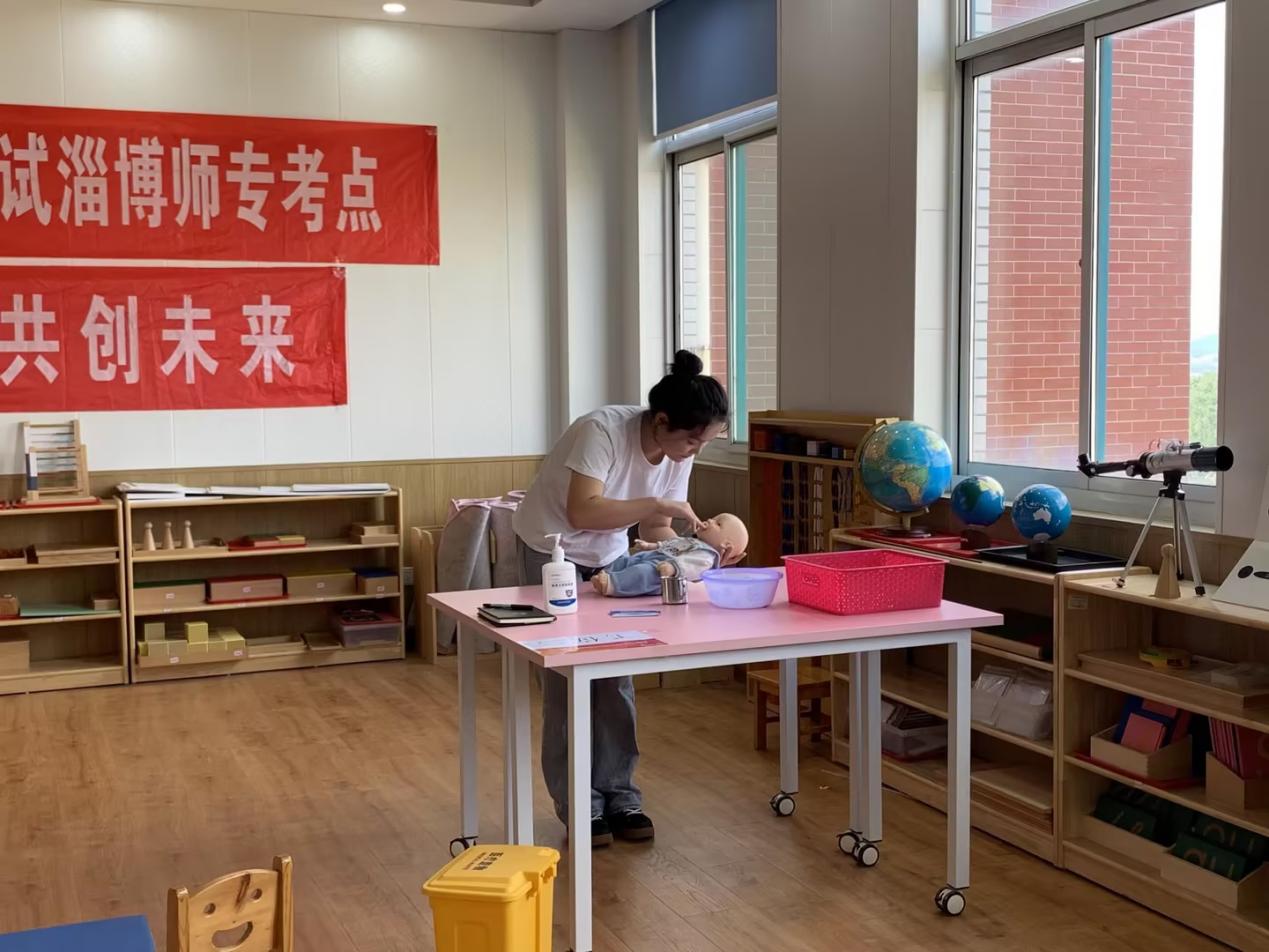 本次考试由理论考试与实操测评两大关键环节组成。理论考试以机考方式进行,试题内容广泛,全面有效地检验了学生对专业理论知识的掌握情况。实操考试则把重点放在对实践能力的考查上,通过高度逼真的婴幼儿照护场景创设与实际情景处理,既考验了考生快速适应环境、迅速进入工作状态的能力,又充分展现了他们在实际情景面前表现出的沉稳谨慎、从容操作的专业素养,切实反映了考生理论知识与实际操作技能的融合。