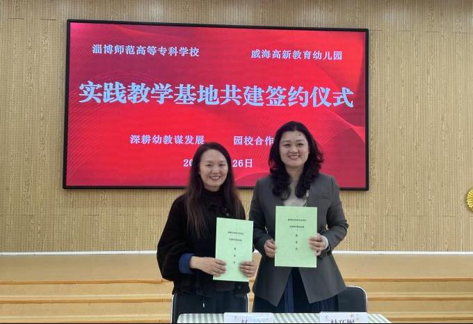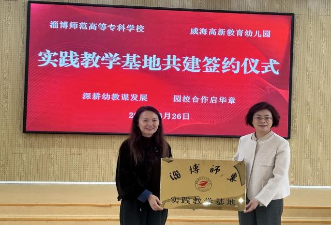 座谈会后,淄博师专188改名taptap与威海高新教育幼儿园举行实践教学基地共建签约仪式,赵瑜与杜巧妮园长共同签署合作协议,并与张瑜书记完成授牌仪式,标志着双方在人才培养、资源共享、托幼一体化人才输送等方面的合作迈入新阶段。