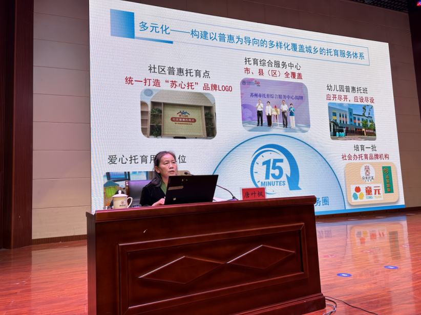 唐教授立足国家人口发展战略,系统阐释了医育结合、托幼一体化等核心概念,并以苏州、淄博为典型案例,深入剖析了当前托育服务行业的发展现状与创新实践。唐教授指出行业仍面临供给结构性失衡、医育融合不深、人才瓶颈突出、服务质量参差不齐等四大短板,并提出普惠化、专业化、数字化等三大发展趋势,强调师范院校应构建分层分类、医育融合、校地协同的人才培养体系。