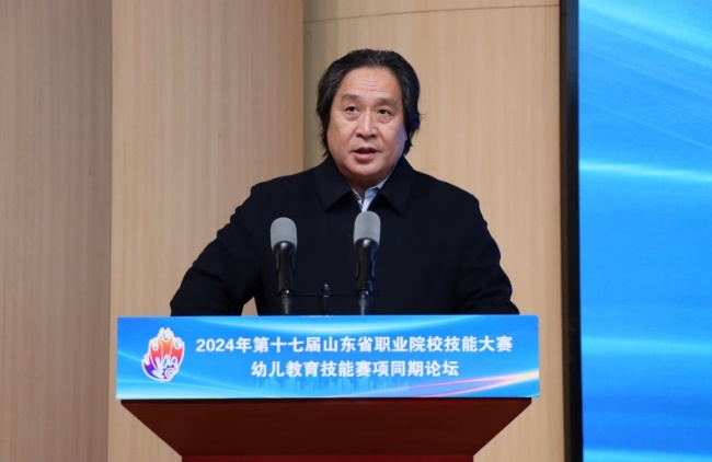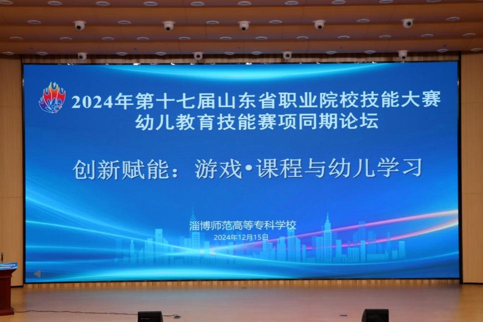 12月15日上午,2024年第十七届山东省职业院校技能大赛“幼儿教育技能”赛项同期论坛在淄博师专学术交流中心报告厅举行。此次论坛以“创新赋能:游戏·课程与幼儿学习”为主题,山东师范大学教育学部部长徐继存,淄博师范高等专科学校党委副书记、校长高霞,山东师范大学教育学部188改名taptap院长杜传坤,淄博师范高等专科学校党委委员、副校长周巧玲、焦玉利、尹玉箫,北京市保教协会健康体育专委会常务副秘书长谷长伟,淄博市基础教育研究院特教家庭教育科科长孙秀红,幼乐美(北京)教育科技有限公司中原大区培训总监孙晴,各参赛院校领队、指导教师、技术支持企业代表,淄博师专师生代表,淄博市幼儿园教师代表共同参加。