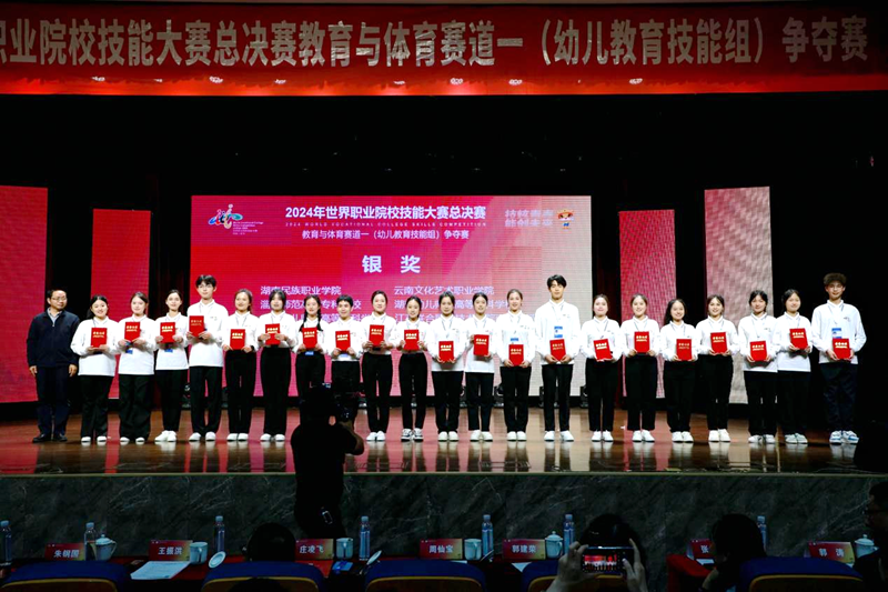 10月25日—28日,2024年世界职业院校技能大赛总决赛教育与体育赛道一(幼儿教育技能组)争夺赛在金华职业技术大学顺利举行。我院学生团队(裴昭羽、张竞心、李鑫如)荣获银奖。